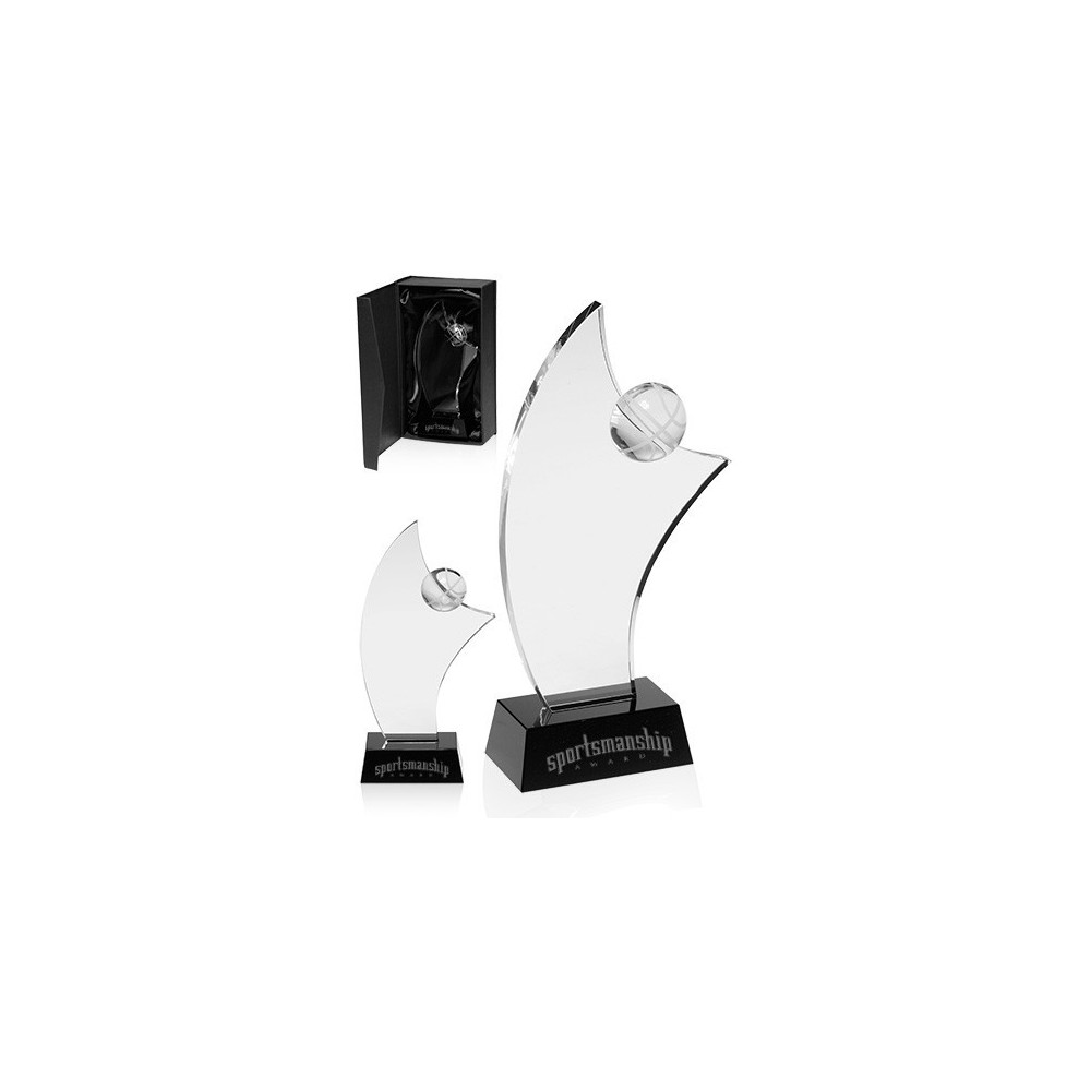 | Keywords | Basketball Topper, Accent, Curved Side, Curved Top, Sport Trophy, Achievement, Recognition, Glass, Trapezoid Base, Contrasting Base, Transparent |