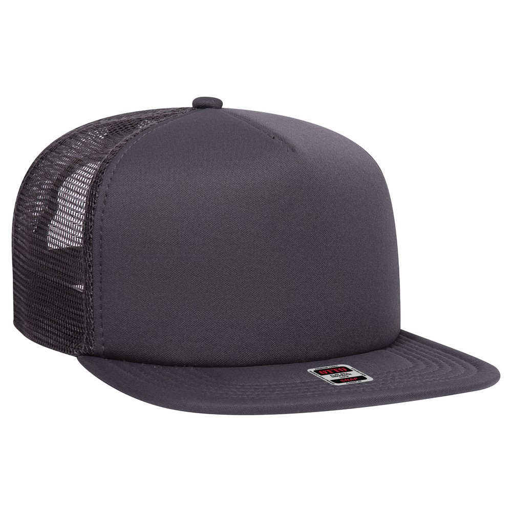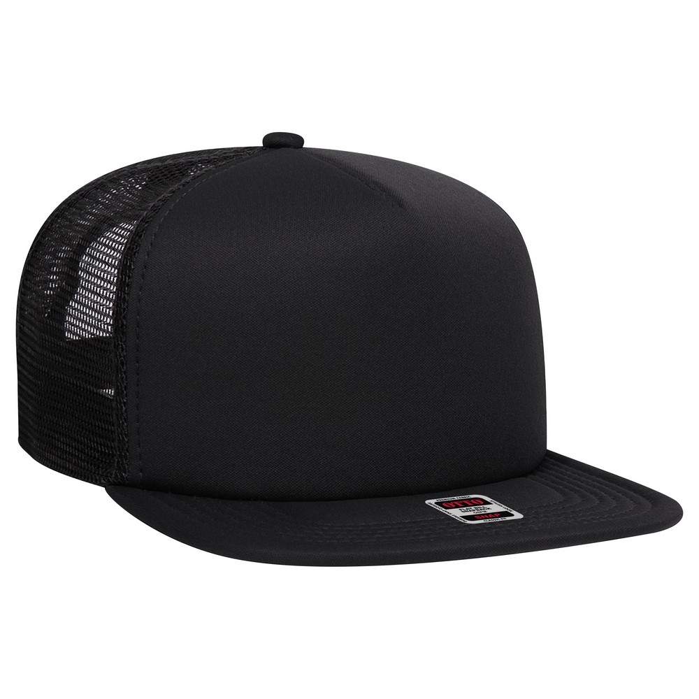 OTTO SNAP Polyester Foam Front Square Flat Visor 5 Panel Pro Style Mesh Back Trucker Snapback Hat